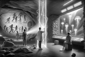 One part of the team is thrown into the distant past, where they find themselves in a cave decorated with ancient cave paintings. While the second part ends in the world of the future, surrounded by glowing jellyfish and bizarre creatures.
